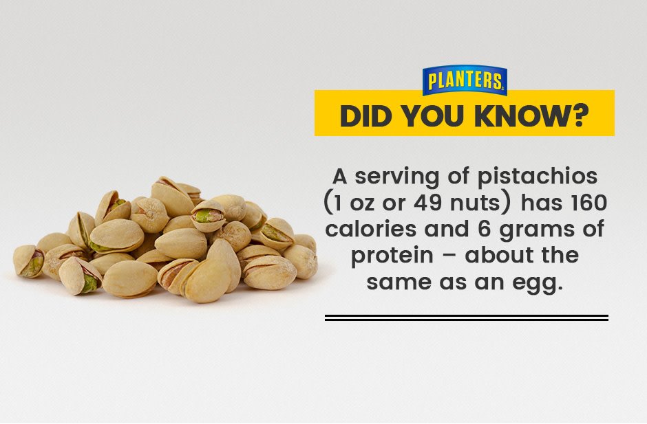 Mr Peanut On Twitter Did You Know A Serving Of Pistachios 1 Oz Or 49 Nuts Has 160 Calories And 6 Grams Of Protein About The Same As An Egg Tuesdayfunfacts